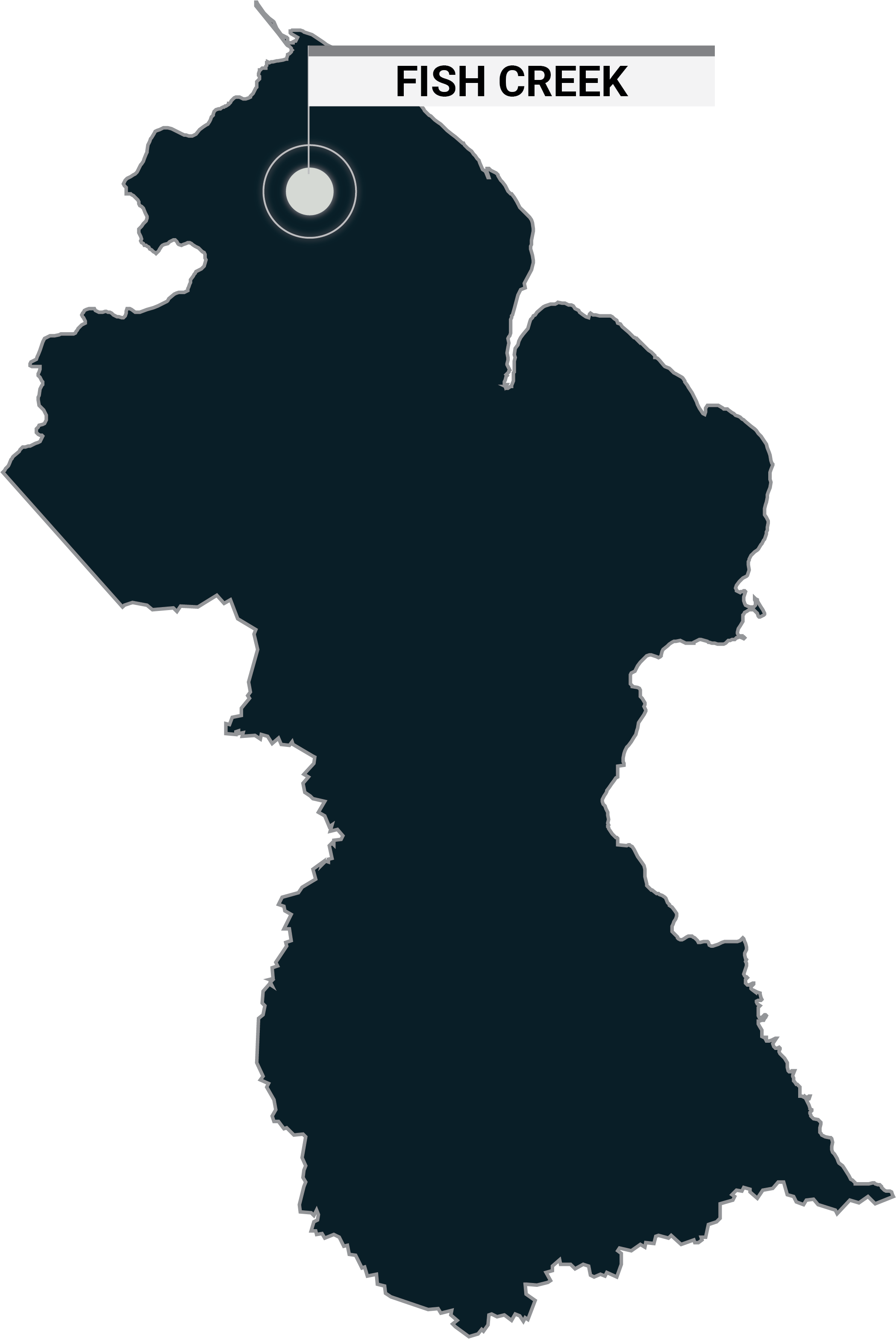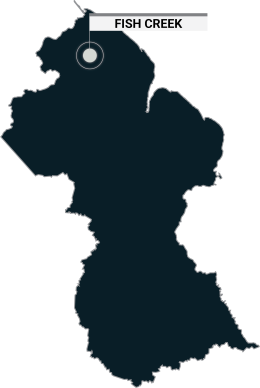 OverviewFish Creek is a 100% owned 6,028 ha (60.28 km2) land package, located in the Barama Greenstone Belt, 10 km west of Arakaka. The project features a high density of large-scale historical and current artisanal mining. The property is located within a large, regional structural zone and contains numerous drill-ready targets. The Fish Creek project has seen only shallow drilling; however, shallow drill holes did encounter gold-rich mineralization.